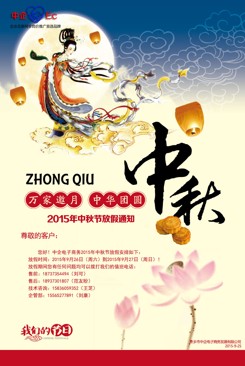 2015年中企電商中秋節(jié)放假通知