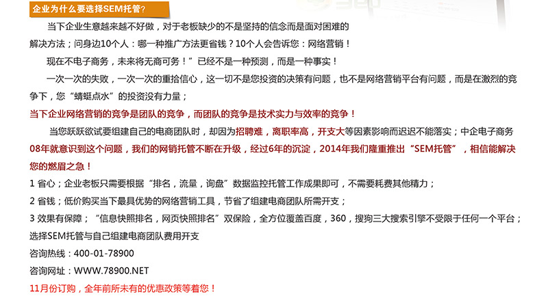 SEM托管 更新時(shí)間:2014-10-18點(diǎn)擊次數(shù):13362次